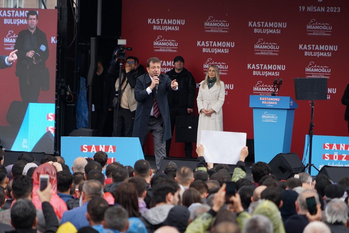 Mitingde konuşan İmamoğlu, Kastamonu’nun her sorununa sahip çıkacağına dair söz vererek, iktidara geldiklerinde Kastamonu'nun sorunlarını çözeceklerini ifade etti.