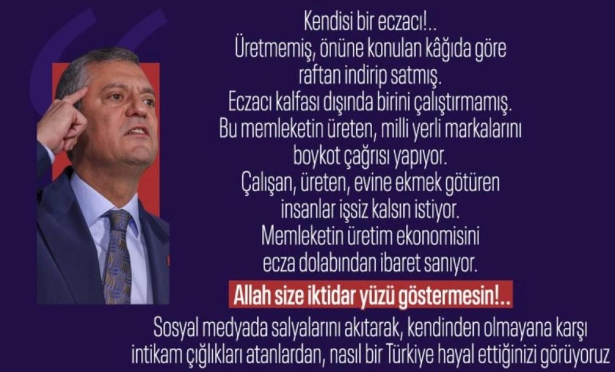 Milli ve dini tüm değerlerimize saldıran grupları destekleyen Özgür Özel'e, asıl mesleği eczacılığı hatırlatarak, boykot çağrısına yönelik yaptığımız eleştirel haber, her nedense bazı eczacıları da rahatsız etmiş durumda.