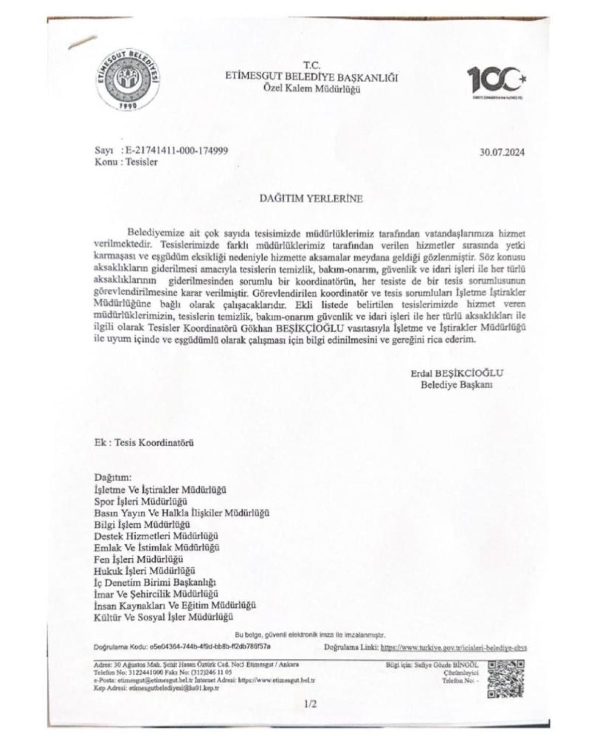 Etimesgut Belediyesi’nden dağıtım yerlerine gönderilen resmi belgenin ortaya çıkmasının ardından skandal patlak verdi.
