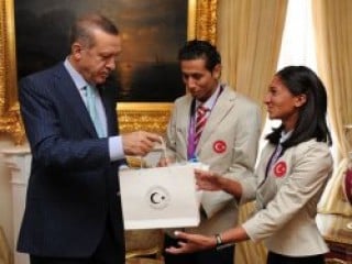 Başbakan Tayyip Erdoğan, 2012 Londra Olimpiyatları'nda madalya kazanan milli sporcuları kabul etti.