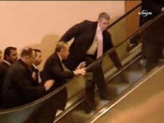 CHP lideri Kılıçdaroğlu'nun başına gelen yürüyen merdiven kazasıdan sonra Erdoğan da yürüyen merdivenlerin azizliğine uğradı. Kılıçdaroğlu'nun yürüyen merdivene tersten binmesi bir anda polemik konusu oldu. Ve iki lider arasında bu olay sözlü atışmalara neden oldu.