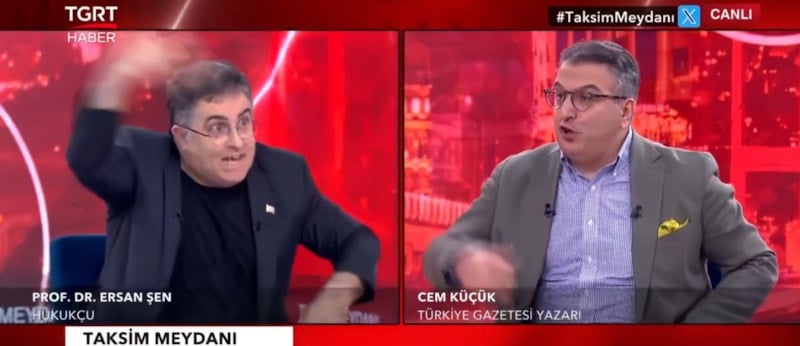 Zaman zaman karşı karşıya gelip tartışmalarıyla gündem olan Hukukçu Ersan Şen ve Türkiye Gazetesi Yazarı Cem Küçük arasında bir kez daha sinirler gerildi.
