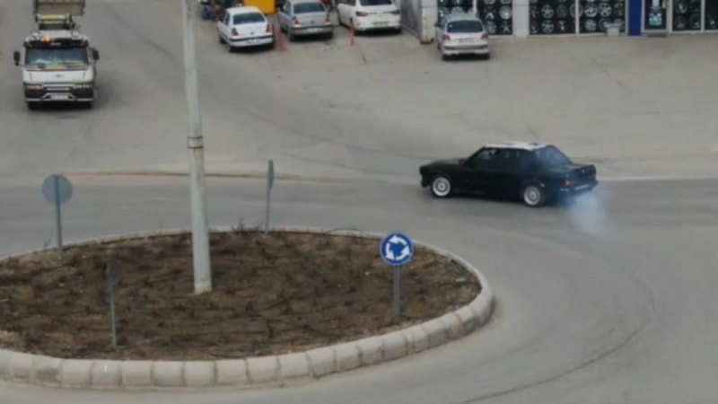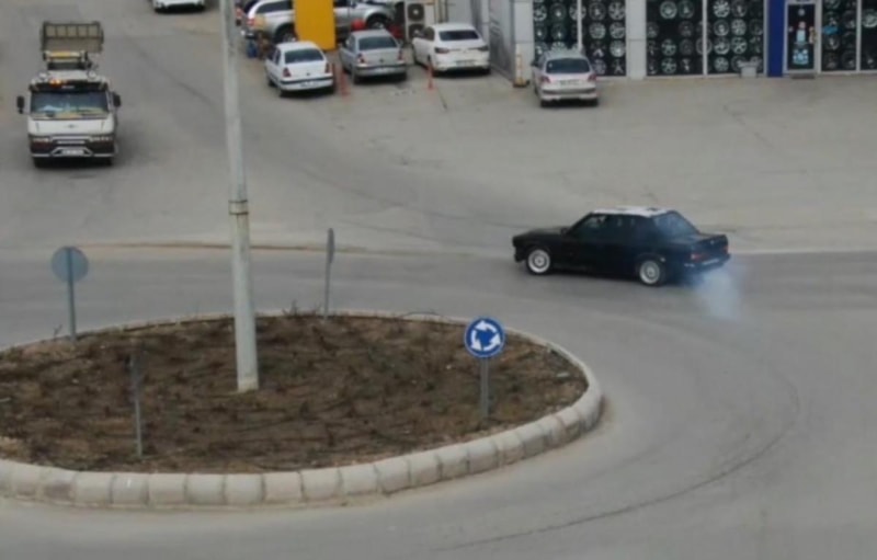 Eskişehir İl Emniyet Müdürlüğü Trafik Denetleme Şubesi ve İnsansız Hava Araçları Büro Amirliği'nce Odunpazarı ilçesinde yapılan havadan drone destekli trafik denetimde, sürücünün kavşakta otomobille drift yaptığı belirlendi.