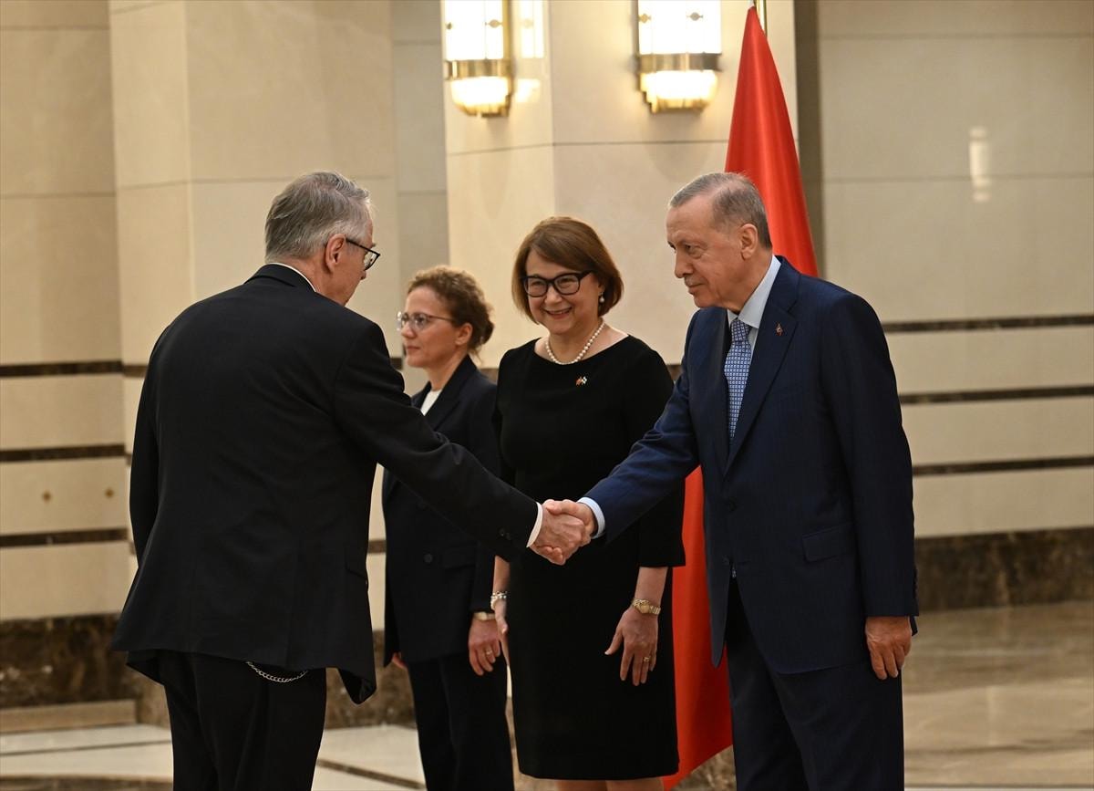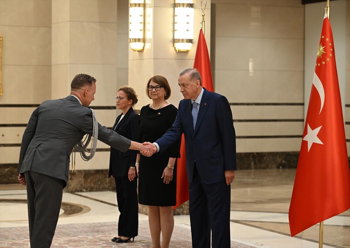 Cumhurbaşkanlığı Külliyesi'ndeki kabulde Büyükelçi Hamalainen, Erdoğan'a güven mektubu sundu.