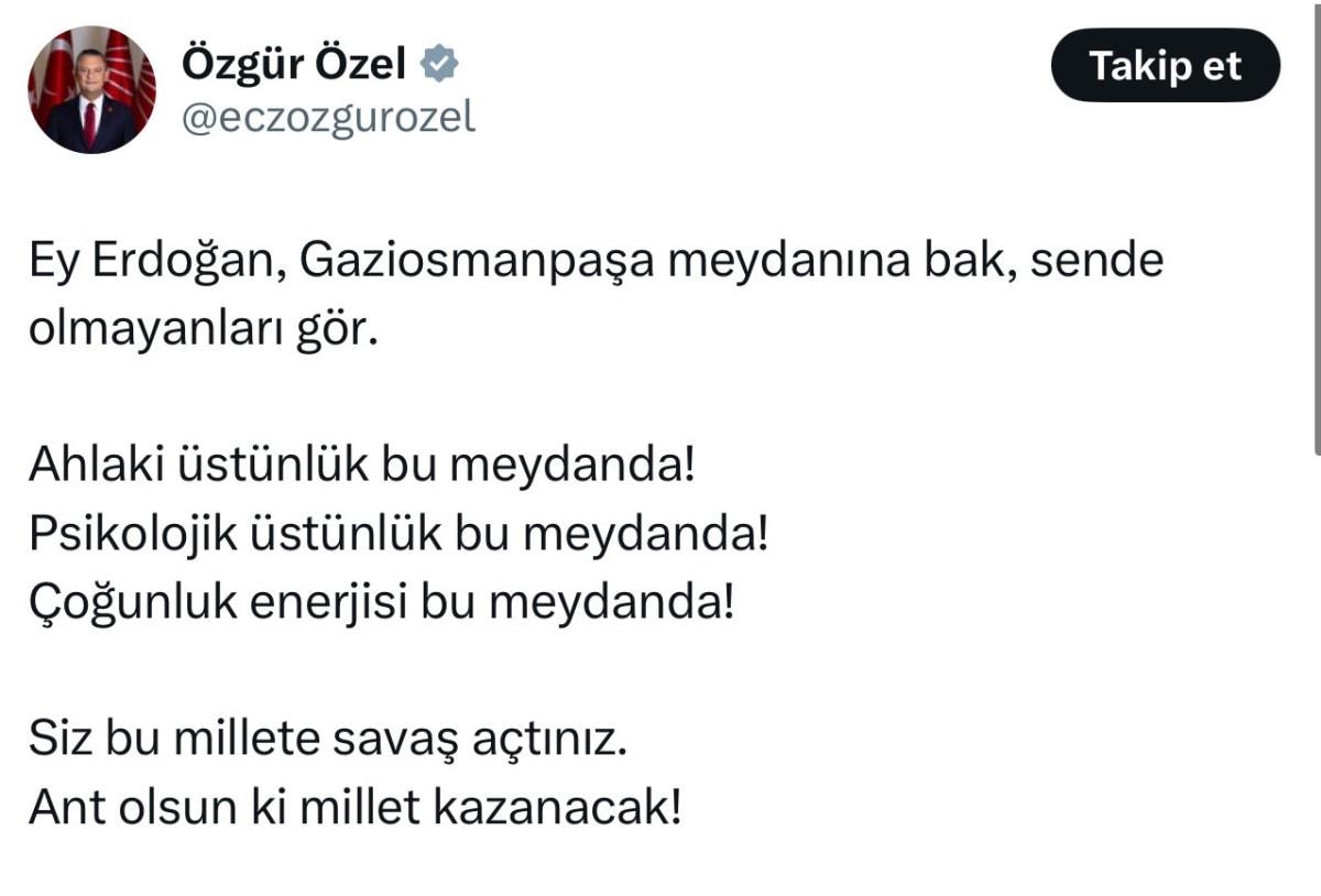 Cumhurbaşkanlığı İletişim Başkanı Fahrettin Altun, sosyal medya üzerinden CHP Genel Başkanı Özgür Özel’in X platformundaki paylaşımlarına yönelik eleştirilerini dile getirdi.
