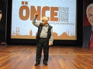 "Mustafa Kemal'in askerleriyiz" sloganlarıyla kürsüye gelen Levent Kırca, konuşmasına Ergenekon tutuklusu İP Genel Başkanı Doğu Perinçek'i selamlayarak başladı. İşçi Partisi'nden İstanbul Büyükşehir Belediye Başkan Adayı olmasını insanları güldürebilmesine bağlayan Kırca, 'mutlu insan, mutlu şehir' temasıyla yola çıktıklarını ifade etti.