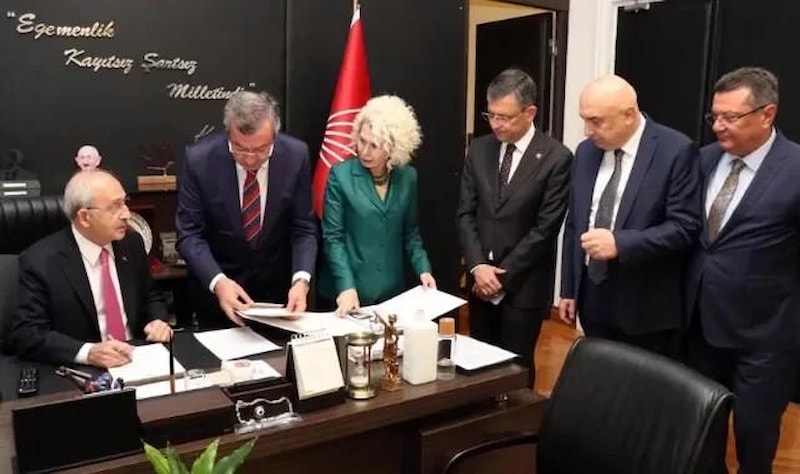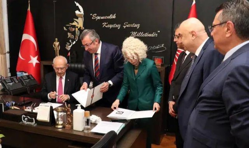 CHP TBMM Grup Başkan Vekilleri Engin Altay, Özgür Özel, Enez Özkoç'un şahitliğinde imzalanan belgeler YSK'ya teslim edildi.