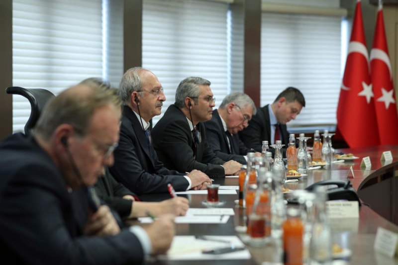 Görüşmede Kılıçdaroğlu'na CHP Genel Sekreteri Selin Sayek Böke, Genel Başkan Yardımcıları Faik Öztrak, Oğuz Kaan Salıcı ve Genel Başkan Başdanışmanı Ünal Çeviköz eşlik etti.