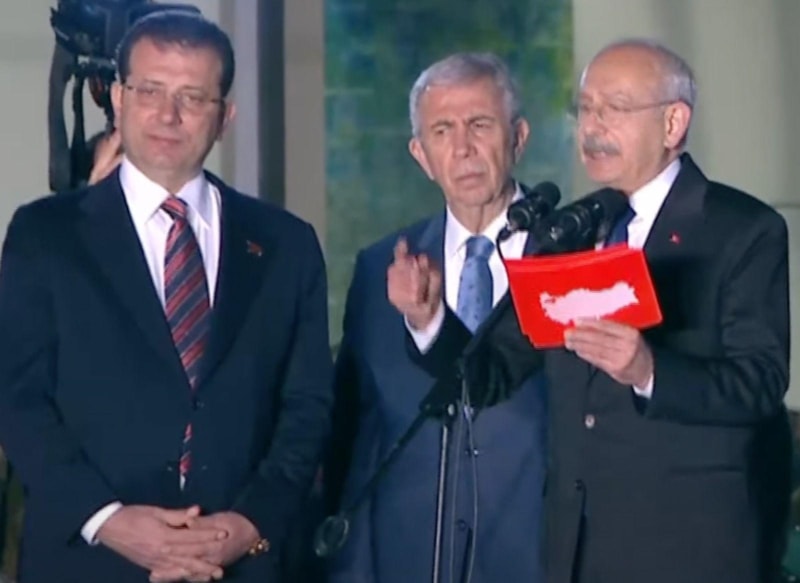 Kılıçdaroğlu'nun adaylığını açıkladığı sırada yanı başında bulunan Ankara Büyükşehir Belediye Başkanı Mansur Yavaş ile İstanbul Büyükşehir Belediye Başkanı Ekrem İmamoğlu, düşük moralli tavırlarıyla dikkat çekti.