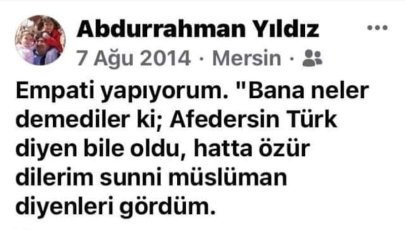 Yıldız'ın, kendisine Türk denildiği için üzüntü duyduğu paylaşımı dikkat çekti. Yıldız paylaşımında, "Empati yapıyorum. Bana neler demediler ki; Afedersin Türk diyen bile oldu. Hatta özür dilerim Sünni Müslüman diyenleri gördüm." ifadelerini kullanıyor.