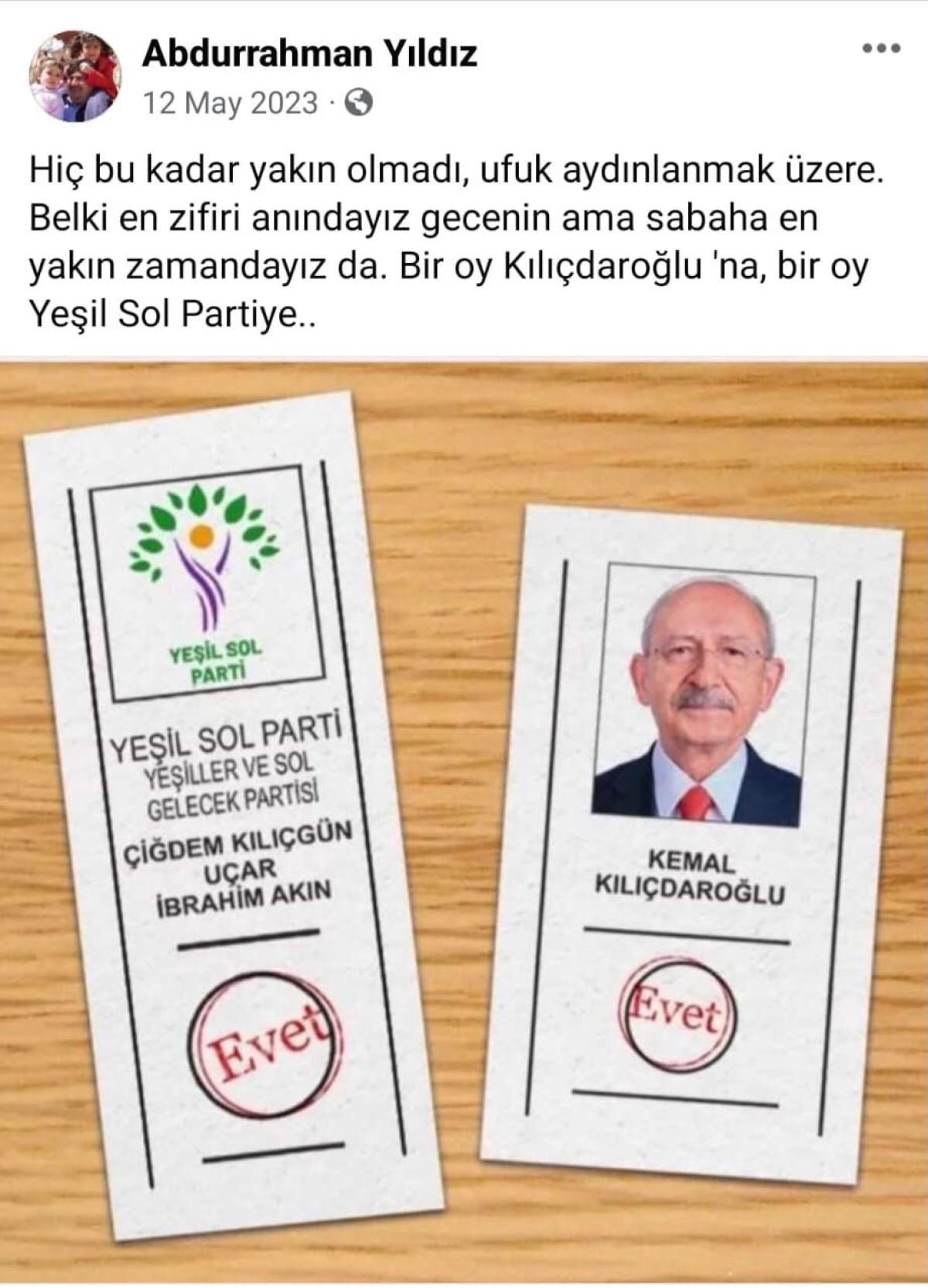 Toroslar'da CHP, HDP ile tanınan, genel seçimlerde HDP için çalışan Abdurrahman Yıldız'ı aday gösterdi.
