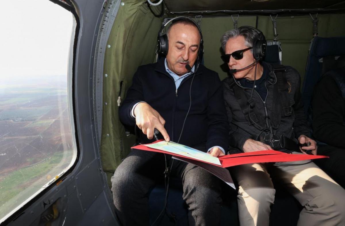 Blinken, Dışişleri Bakanı Mevlüt Çavuşoğlu ile resmi görüşmeler öncesinde dün deprem bölgesinde havadan incelemelerde bulundu.