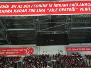 MHP'nin öne çıkan vaatleri arasında mazotun 1 lira 75 kuruş yapılması, evlenecek gençlere 10 bin TL faizsiz kredi, evi olmayan ailelere aylık 250 TL kira yardımı gibi unsurlar yer alıyor.