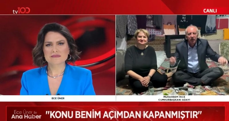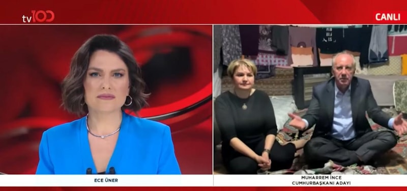 İnce, Hatay'da bir ailenin çadırına misafir olup TV100 ekranlarında Ece Üner ile Ana Haber'e bağlandı.