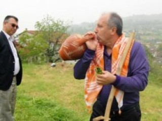 Yalova'nın Merkeze bağlı Elmalık Köyü'ndeki evinin bahçesinde basın mensupları ile bir araya gelen CHP Grup Başkanvekili Muharrem İnce, burada otları biçtikten sonra hem ayran içti hem de basın mensuplarına içirdi.