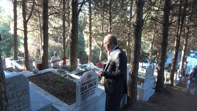 İnce, ardından köy mezarlığına giderek önce babası Şerif İnce'nin mezarını ziyaret eti. İnce, sonrasında akrabalarının mezarları başlarında da dua okudu. İnce, mezarlığın ardından annesi Zekiye İnce'nin evine giderek bayramlaştı ve aile üyelerinin bayramını kutladı.