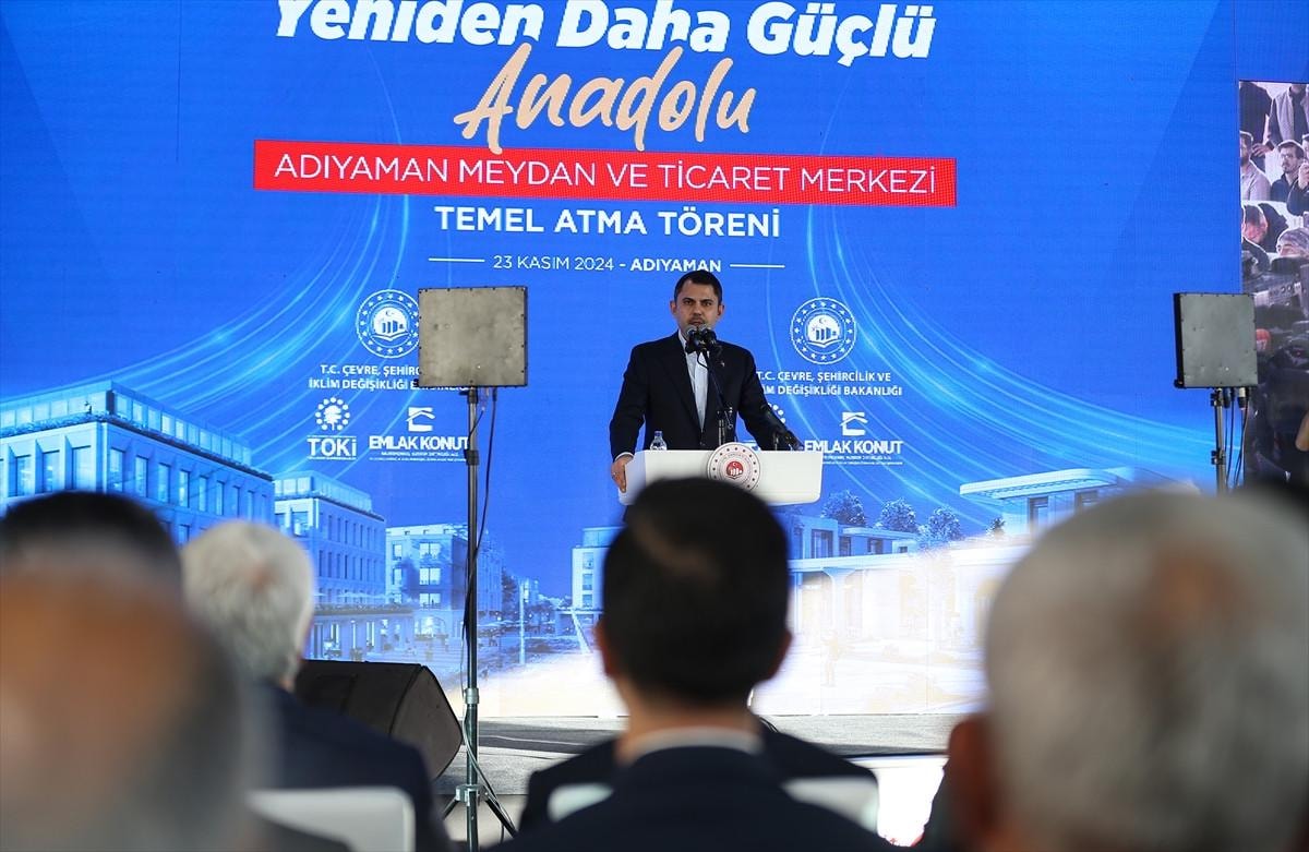 Çevre, Şehircilik ve İklim Değişikliği Bakanı Murat Kurum, Adıyaman Meydan ve Ticaret Merkezi'nin temel atma töreninde yaptığı konuşmada, kente yeşil alanları, tarihi dokusu ve bereketli dükkanlarıyla yeni bir meydan kazandıracaklarını ifade etti.