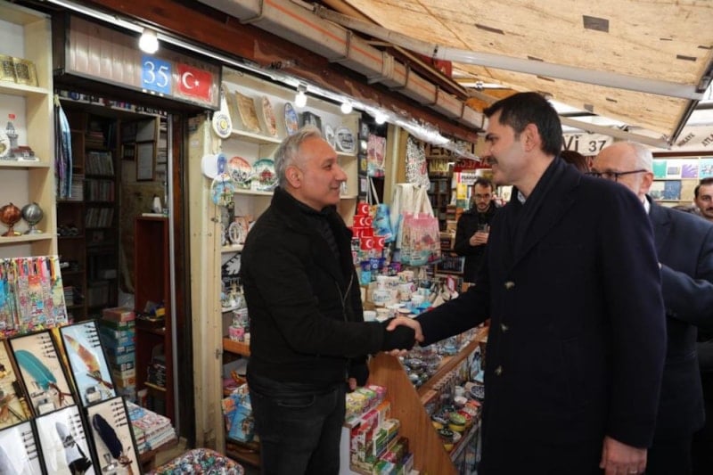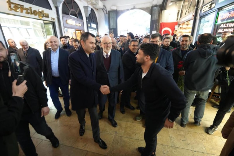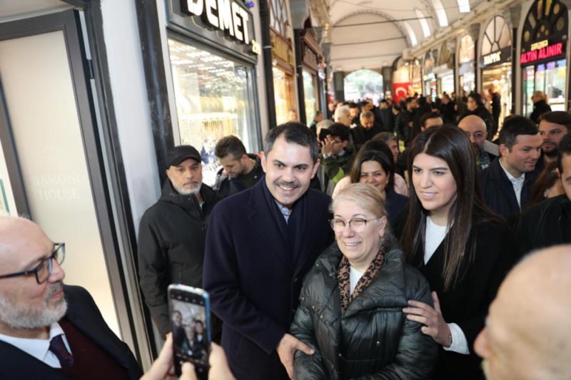 Yerel seçim çalışmaları kapsamında Kapalıçarşı'ya giden Murat Kurum, vatandaşlarla bir araya geldi.