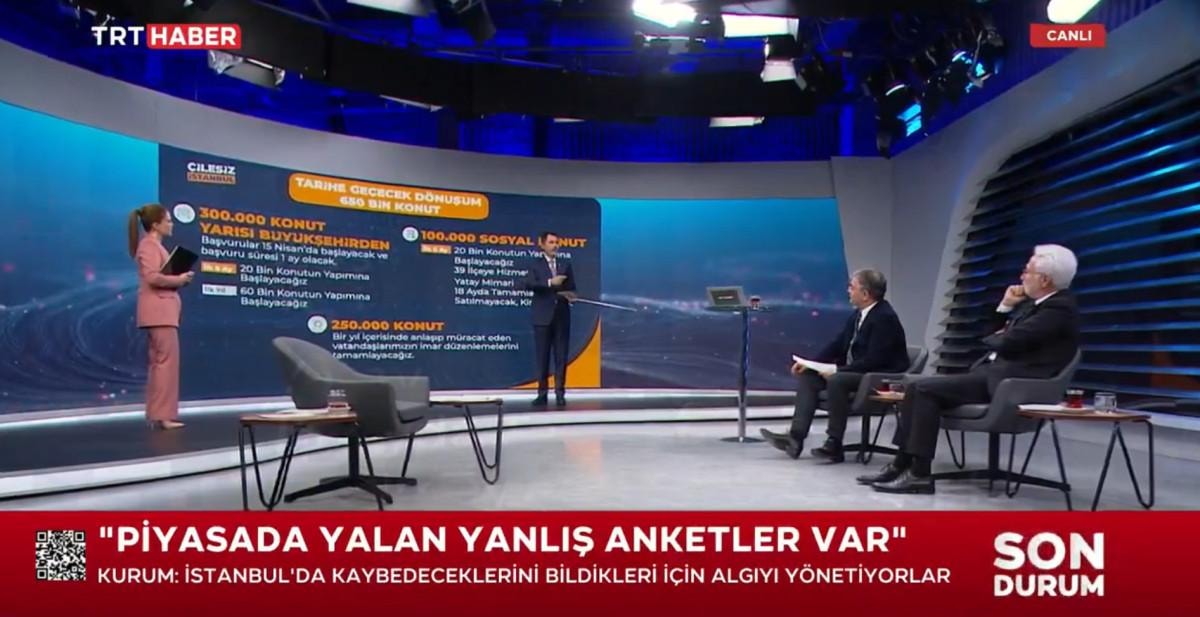 Cumhur İttifakı'nın İstanbul Büyükşehir Belediyesi (İBB) adayı Murat Kurum da TRT Haber'de katıldığı programda projelerini ve vaatlerini tekrar dile getirdi.