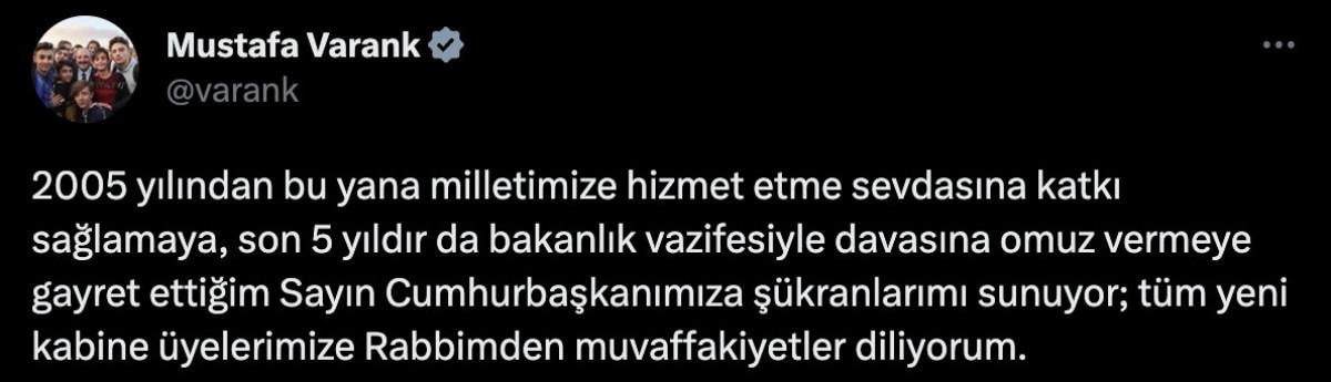 Mustafa Varank: Yeni kabine üyelerimize Rabbimden muvaffakiyetler diliyorum