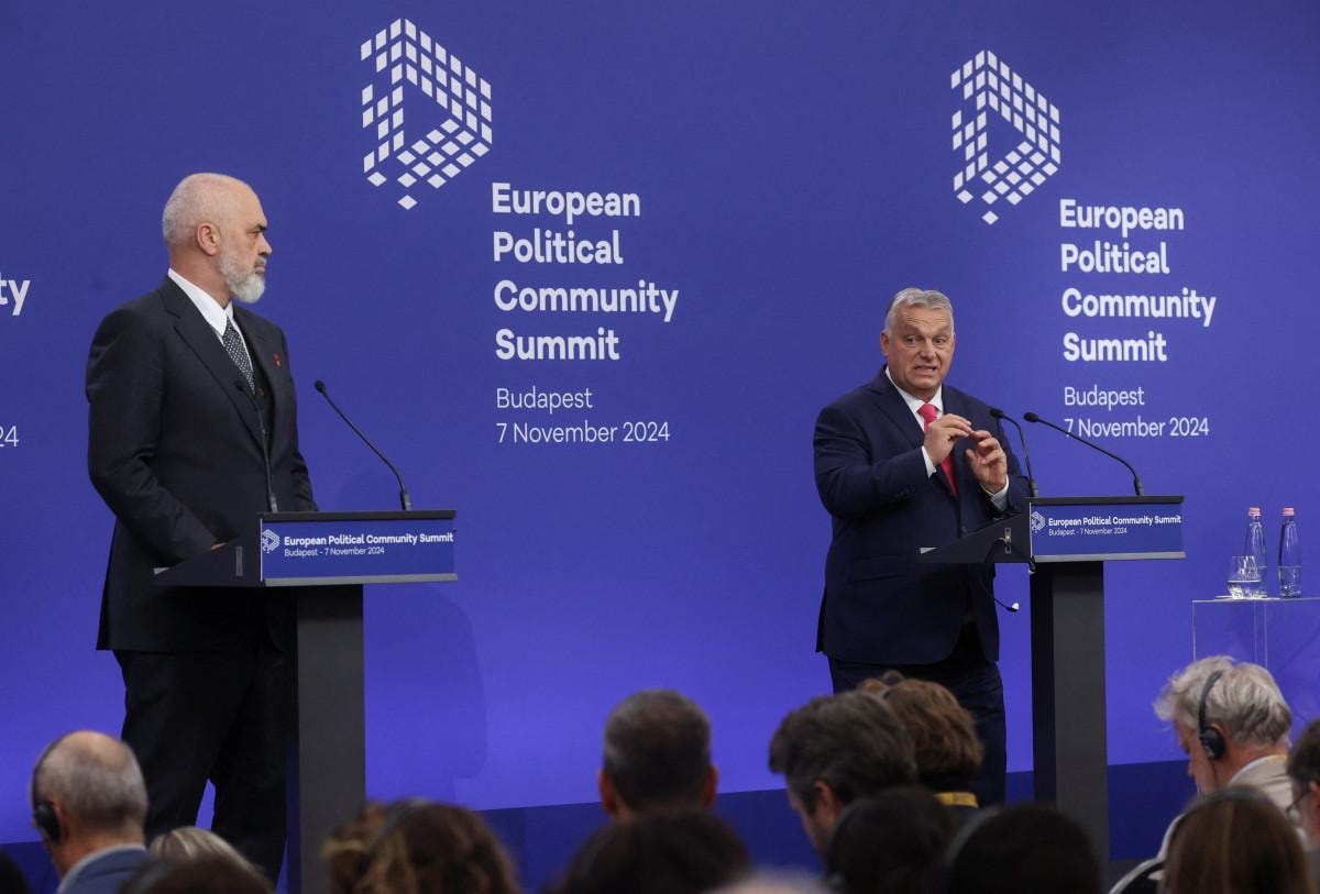 Macaristan Başbakanı Viktor Orban, ülkesinin ev sahipliği yaptığı 5. Avrupa Siyasi Topluluğu Zirvesi'nin ardından, bir sonraki zirvenin ev sahibi Arnavutluk Başbakanı Edi Rama ile ortak bir basın toplantısı düzenledi.