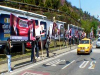 MHP milletvekili adayı Ümit Özdağ ve seçim koordinasyon ekibi özelikle Beşiktaş'taki billboard fiyatlarının yüksek olduğunu belirterek ellerindeki billboardlarla cadde cadde gezerek eylem yaptı.