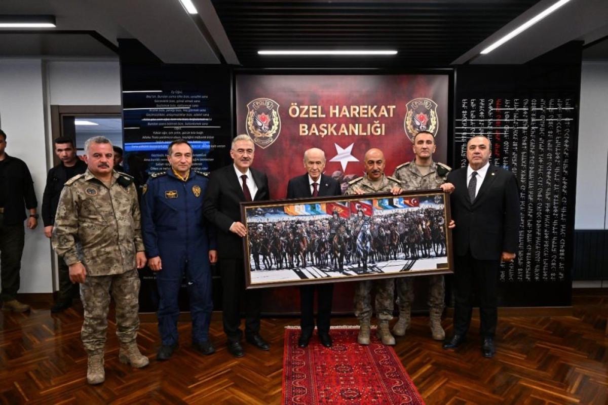 Ziyaretinin ardından polisleri selamlayan Bahçeli, Özel Harekat Başkanlığı'ndan ayrıldı.