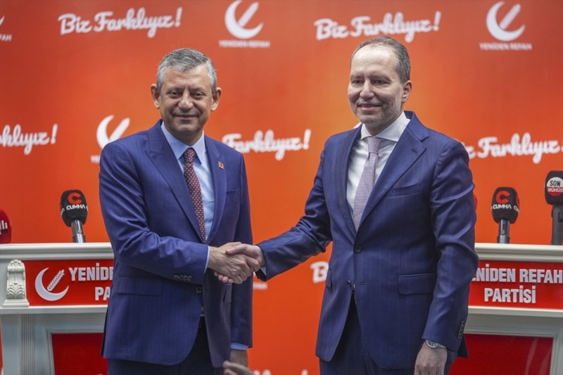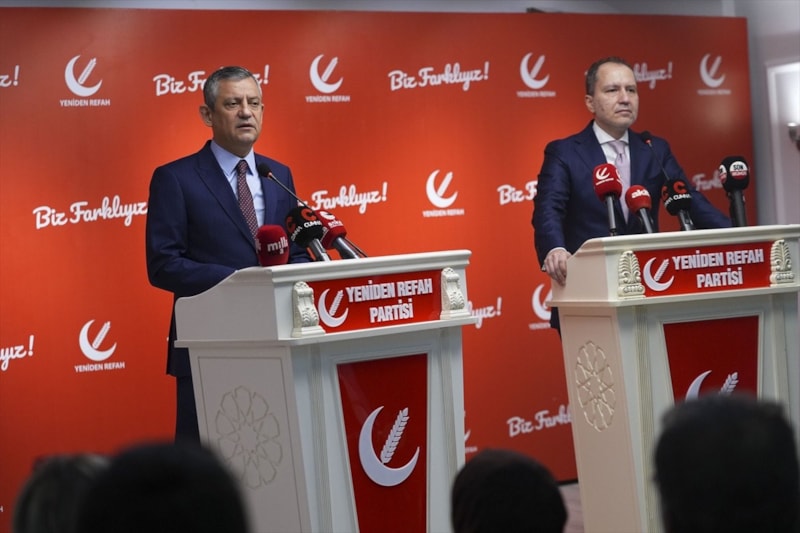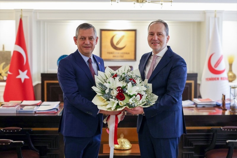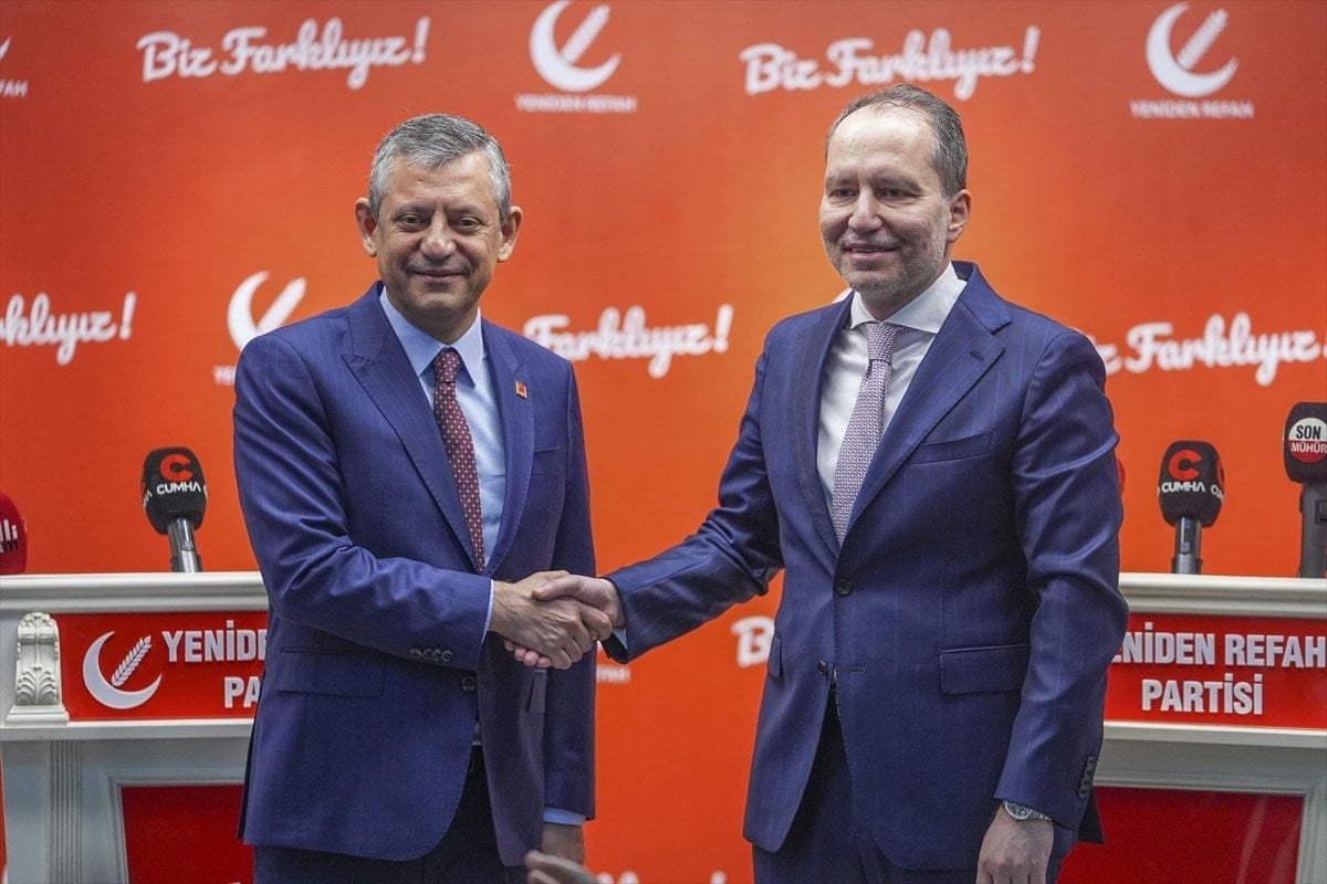 CHP Genel Başkanı Özgür Özel, beraberindeki heyetle Yeniden Refah Partisi Genel Merkezi’nde Fatih Erbakan’ı ziyaret etti. Yaklaşık bir saat süren ve basına kapalı gerçekleştirilen görüşmenin ardından iki lider, ortak basın toplantısı düzenledi.