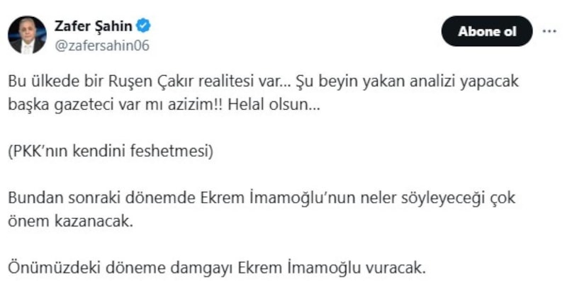 "Bu ülkede bir Ruşen Çakır realitesi var… Şu beyin yakan analizi yapacak başka gazeteci var mı azizim!! Helal olsun…"