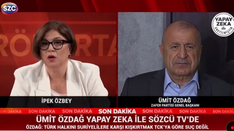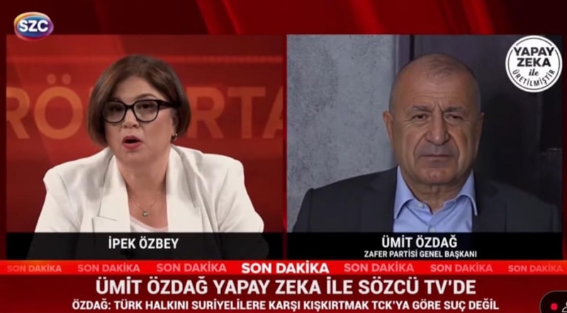 Tutuklu bulunan Zafer Partisi Genel Başkanı Ümit Özdağ, yapay zeka teknolojisi kullanılarak SÖZCÜ TV ekranlarına bağlandı.