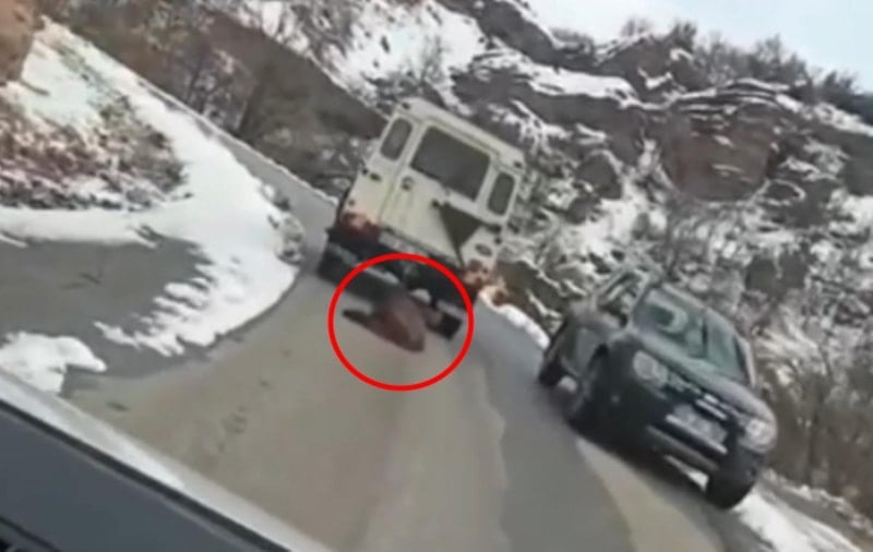 Tunceli- Erzincan yolunda, Pülümür Vadisi'nde ölü yaban domuzu, cipin arkasına zincirle bağlanarak kilometrelerce sürüklendi.