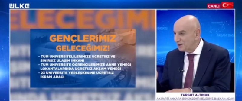 Ankara Büyükşehir Belediye başkan adayı Turgut Altınok da Ülke TV'de Akşa Baskısı programına katılarak soruları cevaplandırdı.