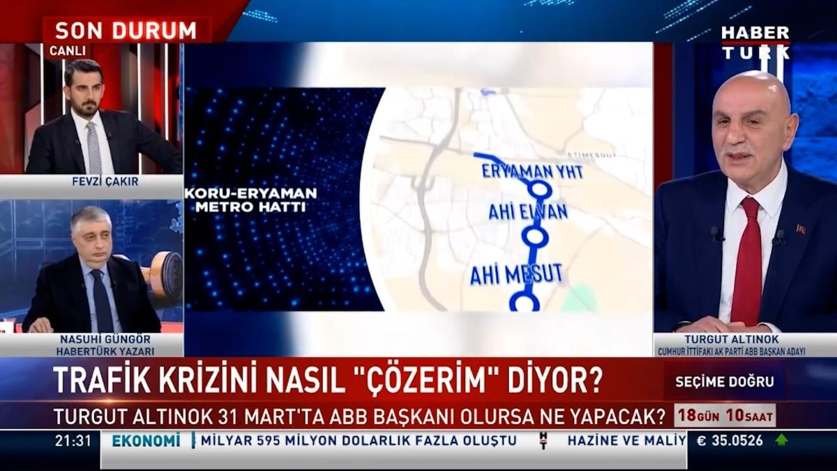 Cumhur İttifakı Ankara Büyükşehir Belediyesi (ABB) Başkan adayı ve Keçiören Belediye Başkanı Turgut Altınok da, Habertürk'te katıldığı Seçime Doğru programında soruları cevaplandırdı.
