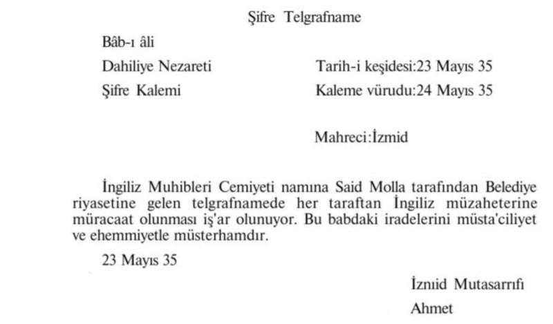 İşte bu anlayışın Osmanlı mülkündeki temsilcilerinden biri olan Sait Molla, böylesi tuhaf bir isimle cemiyetini kurmuştu. Molla, cemiyetin faaliyete geçişinden üç gün sonra bütün belediye başkanlıklarına bir telgraf göndererek, İngiliz Muhipleri Cemiyeti’nin halka anlatılıp, üye kazanılmasını istemişti. Molla ayrıca, “Halk, İngiliz Elçiliği’ne, gazetelere mektup yazıp, İngiliz taraftarlığını kurtuluş yolu olarak gördüklerini anlatsın.” diyordu.