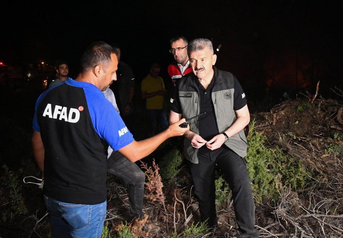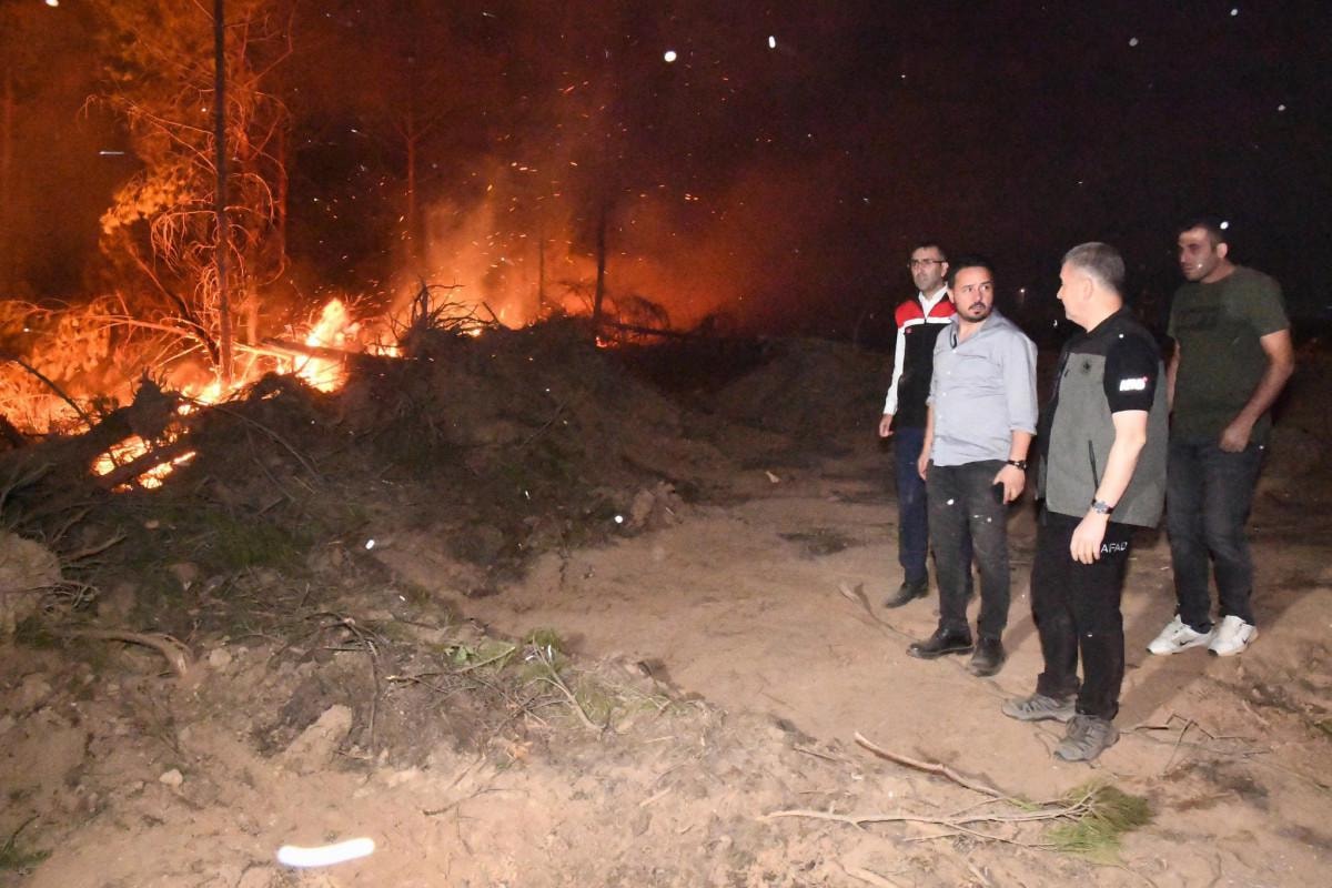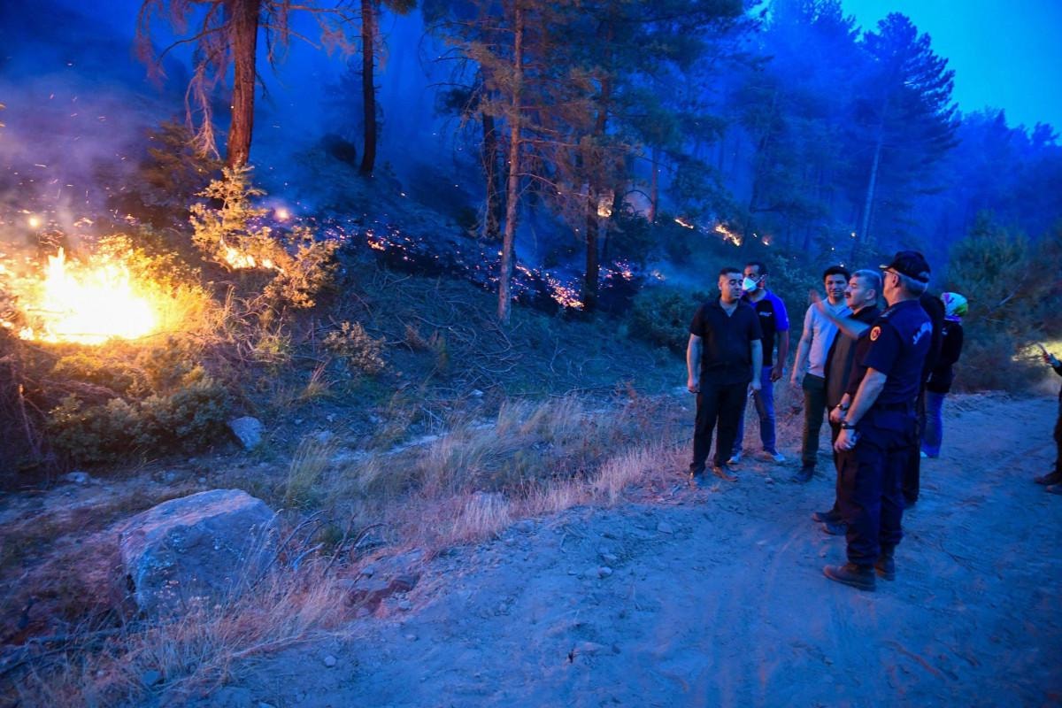 Havanın kararmasıyla havadan müdahale sona ererken, karadan 95 araç ve 309 personelle yangın söndürme çalışmaları aralıksız devam etti.