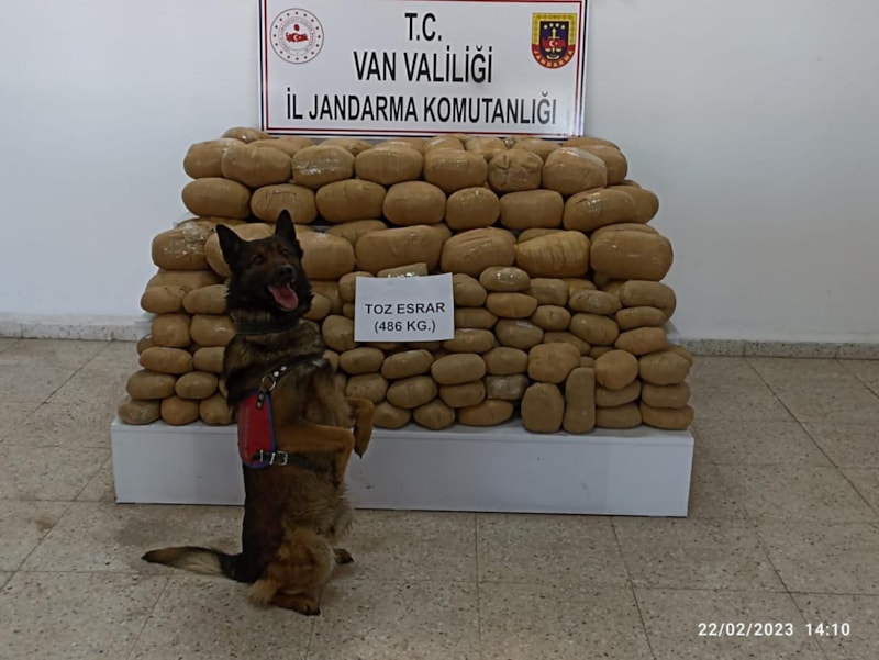 Başkale ilçesi kırsalında, jandarma ve hudut birliklerince düzenlenen operasyonda, narkotik köpeği ‘Kaşkol’ ile yapılan aramalarda 486 kilo toz esrar ele geçirildi.