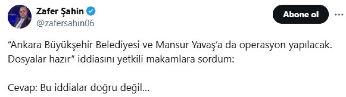 Ankara Büyükşehir Belediyesi ve Mansur Yavaş’a da operasyon yapılacak. Dosyalar hazır” iddiasını yetkili makamlara sordum:
