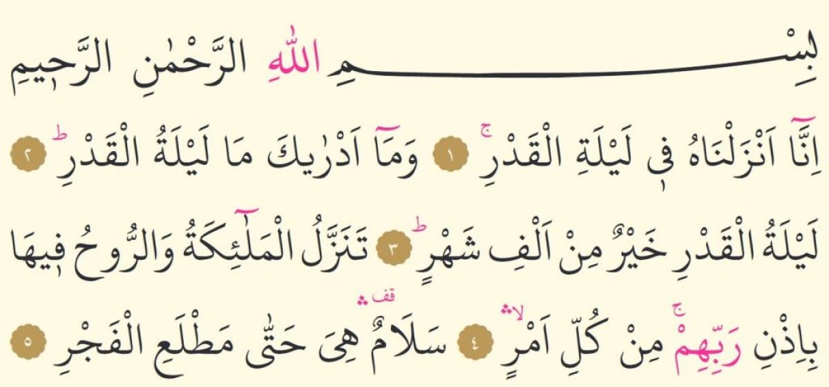 1- İnnâ enzelnâhu fî leyleti-lkadr.
