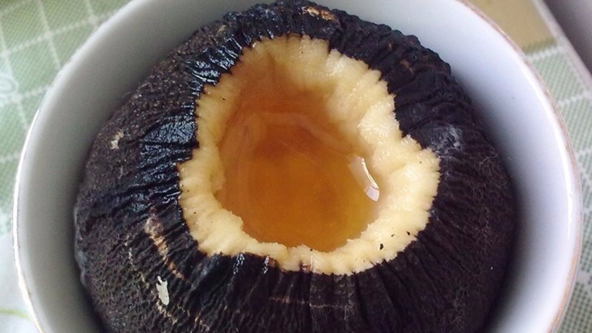Siyah turpun baş kısmını kapak gibi kesin ve içini oyun. Turpu bir bardağın içine oturtun. İçine tercihen doğal bal koyun.