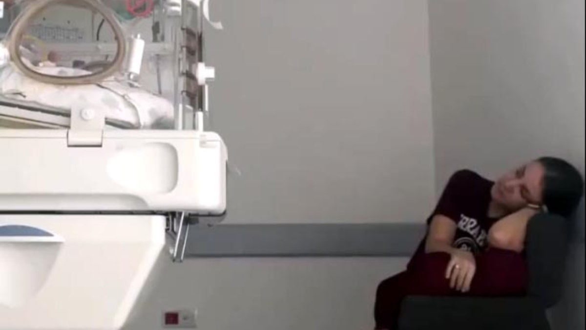 Hasırcılar'ın gözünü kuvözden ayırmadan bebeğin her hareketini takip ettiği görüntüler, büyük ilgi gördü.