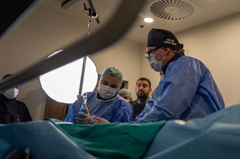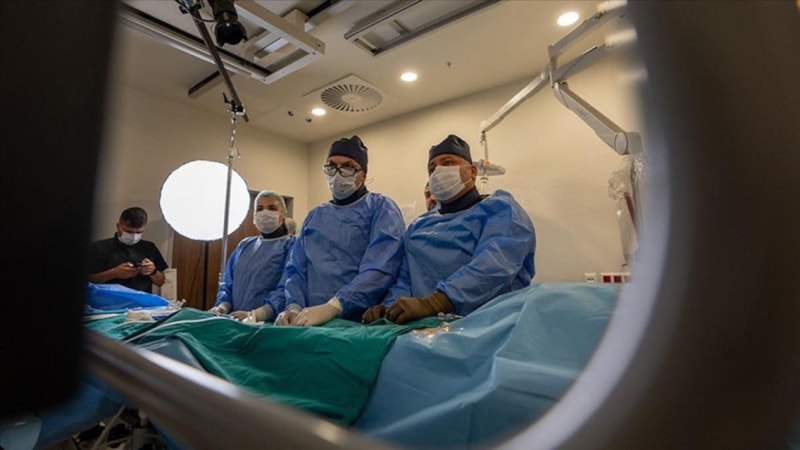 Ankara Etlik Şehir Hastanesi'nde 73 yaşındaki felçli kadın hastaya, kapalı yöntemle kasık bölgesinden girilerek yapılan beyin cerrahi operasyonunu, Mısır'ın başkenti Kahire'de 450 doktor canlı yayında eş zamanlı izledi.