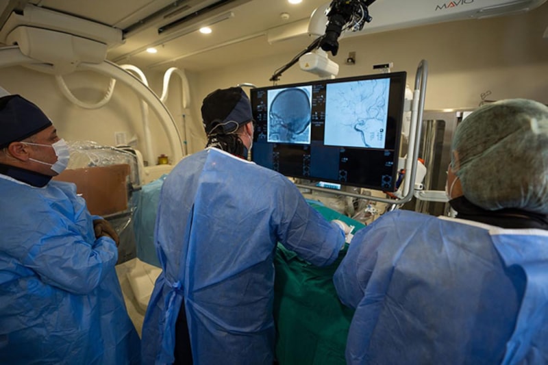 Bu kapsamda 3 günde 3 ameliyat gerçekleştiren Etlik Şehir Hastanesi Beyin ve Sinir Cerrahisi Kliniği İdari Sorumlusu Prof. Dr. Mehmet Erhan Türkoğlu öncülüğündeki ekip, son olarak 73 yaşındaki, sürekli inme atakları geçiren felçli kadın hastanın beynine, kapalı yöntemle kasık bölgesinden girerek stent taktı.