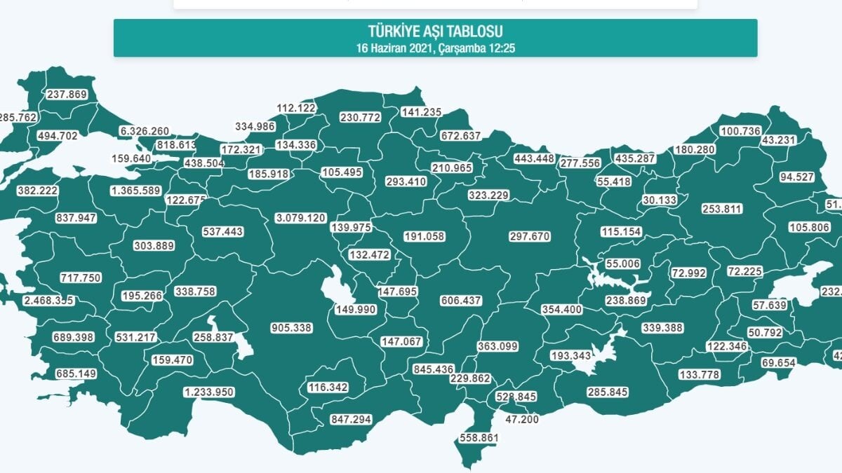 Platformda ülke genelinde toplam aşılanan kişi sayısı canlı olarak takip edilebiliyor. Bakanlık aynı zamanda hangi ilde kaç kişinin aşı olduğu bilgisi de düzenli olarak güncelliyor.