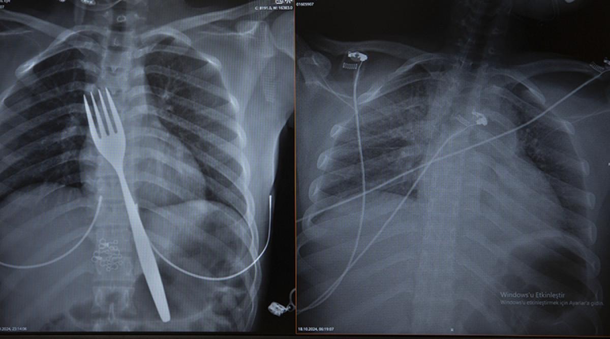 Burada röntgeni çekilen hastanın yemek borusunda 18 santimlik çatal olduğu tespit edildi.