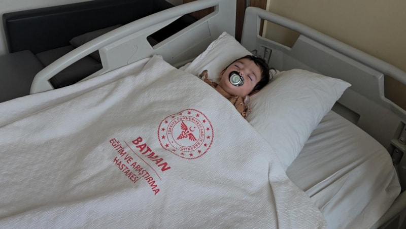 Batman Eğitim ve Araştırma Hastanesi Çocuk Cerrahisi Doktor Selim Özkaya tarafından ameliyata alınan 9 aylık Mine bebek, bronkoskopi işlemi ile ağız yoluyla ince metal bir kamera tüpü ile akciğerlerine girilerek akciğere saplanan kabuklar çıkartıldı.