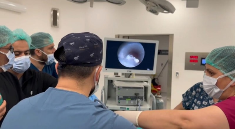 Çocuk cerrahisi uzmanı Op. Dr. Selim Özkaya ve ekibi tarafından genel anestezi altında, bronkoskopi uygulanan Yiğit'in soluk borusu ile akciğer hava yollarını tıkayan ceviz parçaları çıkarıldı.