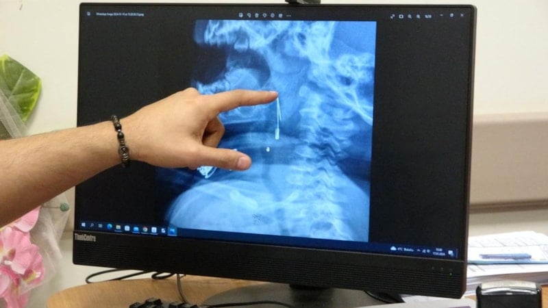 8 aylık bir bebek, Bitlis’in Güroymak ilçesinden tarafımıza danışıldı. Güroymak ilçesinde çekilen röntgen sonucunda çengelli iğnenin soluk borusunun girişinde olduğunu teyit ettik. Yapılan müdahaleler sonucunda çengelli iğneyi çıkardık. Çıkardıktan sonra iki saat kadar gözlem altında tuttuk hastamızı. Daha sonrasında herhangi bir komplikasyonla karşılaşmadık ve sorunsuz bir şekilde taburcu ettik.