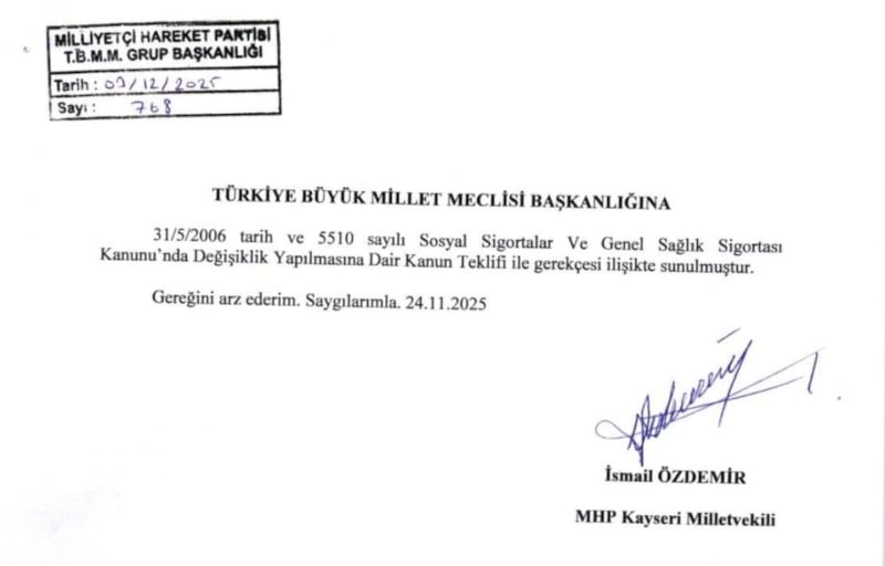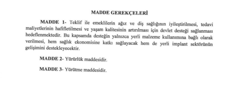 MHP Kayseri Milletvekili İsmail Özdemir'in sunduğu teklifle yerli üretim olmak şartı ile ve 4 adetten fazla olmamak üzere implant tedavilerinin SSK kapsamına alınması önerildi.