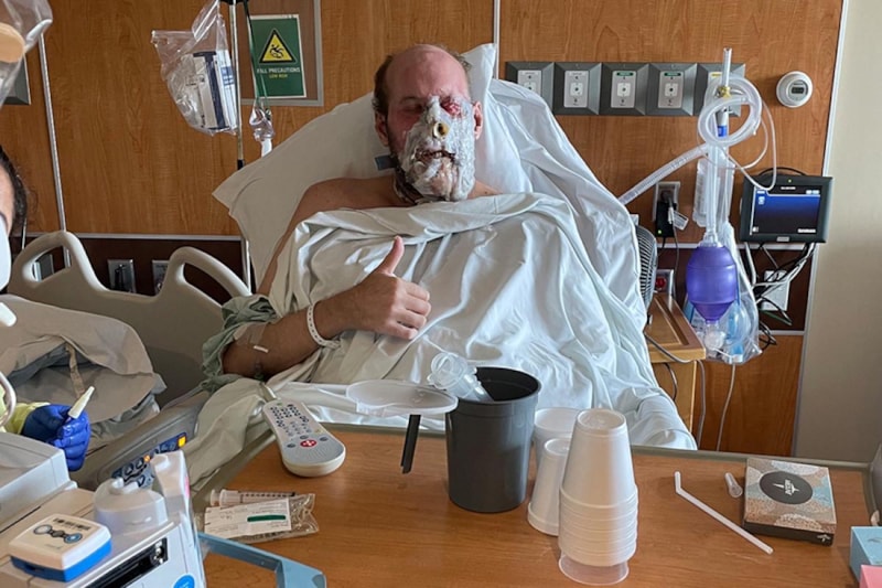 46 yaşındaki Aaron James, iş kazası sırasında yüzünde ciddi kayıplar yaşadı.