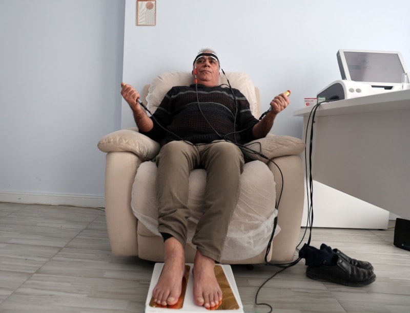 Üçüncü seansını alıyor. Burada aslında kilit nokta, burada bir sihirli değnek yok. Cihaza girdim, midem bulanacak veya sigarayı görmeye tahammül edemeyeceğim değil. Önce sizin istemeniz gerekiyor. Siz istediğiniz taktirde de bu çok güçlü bir destek terapisi oluyor. Çünkü kandaki nikotini biz sıfırlıyoruz. İşin psikolojik kısmı kendilerinin elindedir." ifadelerini kullandı.